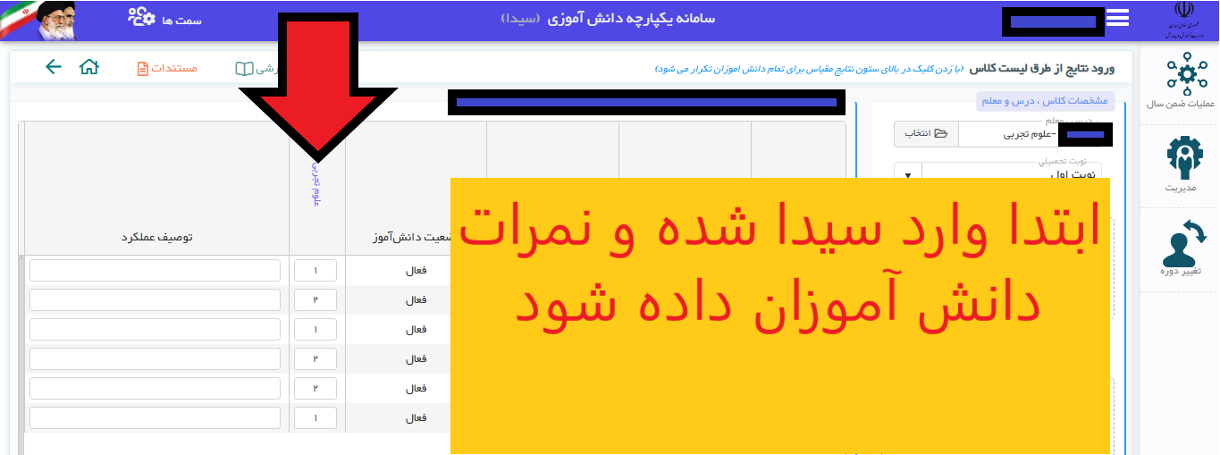 مراحل استفاده از ماکروی ثبت نمرات بسیار ساده هستند و تمام مراحل به صورت عکس به صورت مرحله به مرحله نمایش داده شده است